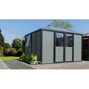 Vitavia Metallgerätehaus Universum schwarz mit Bodenplatte 317 x 321 cm Produktnummer: 0692652478 Stil trifft Stabilität: Das Vitavia Universum in elegantem Schwarz bietet mit 317 x 321 cm viel Platz für Gartengeräte, Maschinen und Zubehör. Die im Lieferumfang enthaltene Bodenplatte sorgt für festen Stand und zusätzlichen Schutz. Robuste, pulverbeschichtete Aluminiumprofile, ESG-Fenster für Tageslicht und das markante Zeltdach machen das Gerätehaus zu einer langlebigen, wetterfesten und wartungsfreien Lösung – ideal für anspruchsvolle Gartenbesitzer. Aufstellmaß (mit Dach): 317 x 322 cm (B x T) = 10,2 m² Grundfläche: 10,2 m² Wandstärke: 3 mm Innenmaß: 314 x 314 cm (B x T) Firsthöhe: 265 cm Dachform: Zeltdach Schneelast: 25 kg/m² Material: feuerverzinktes Stahlblech Farbe: salbei, grau Türmaß: 174 x 142 cm (H x B) Mit Bodenplatte Mit Lüftung, wartungsfrei, wetterfest, langlebig Lieferumfang: Dachmaterial, Seitenwände, Fenster, Tür, Rahmenmaterial, Regenentwässerung, Bodenplatte, Montagematerial Herstellerinformationen: E.P.H. Schmidt u. Co GmbH Höfkerstraße 30 44149 Dortmund, Deutschland eMail: verkauf@eph-schmidt.de Herstellernr. 40006199