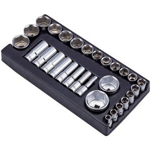 Anzahl Einsätze/Schubladen: 1+1+1 [3] / 1; G+F; type F. Anzahl der Werkzeuge: 29. Buchsengröße [Zoll]: 1/2. Einsatztyp: Kunststoff. Einsätze Größe [mm]: 190x380. Hersteller: HANS. Herstellernummer: TT-2, TT-2. Index: TT-2. Kappengröße [mm]: 10; 12; 13; 14; 15; 16; 17; 18; 19; 20; 21; 22; 24; 27; 29; 30; 32; 34; 36; 41. Profil: 6-Kant. Werkzeugtyp: Buchse/Sechskant.