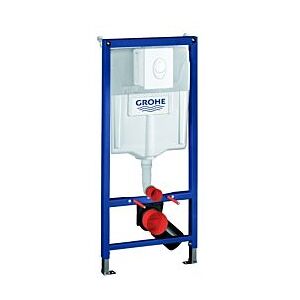 Grohe Rapid SL Projekt Wand-WC-Element 38840000für Vorwand- oder StänderwandmontageStahlrahmenmit Schnellverstellung und HöhensicherungBefestigungsmaterial2 WC-HaltebolzenKeramikbefestigungSchraubenabstand 180/230 mmAblaufbogen Ø 90 mmtiefenverstellbar Reduzierstück Ø 90/110 mmZu- und AblaufgarniturSpülkasten GD 26 - 9 l mit werkseitiger Einstellung 6l und 3lpneumatisches Ablaufventil mit zwei Funktionen: 2 Mengen oder Start & StoppWasseranschluss von links/rechts/hinten oder obenArmaturengruppe IschwitzwasserisoliertWasseranschluss DN 15 mit integriertem Eckventil und werkzeugloser Schlauchverschraubungwerkzeuglos montierbarer Revisionsschacht mit Rohbauschutz senkrechte und waagerechte Montage